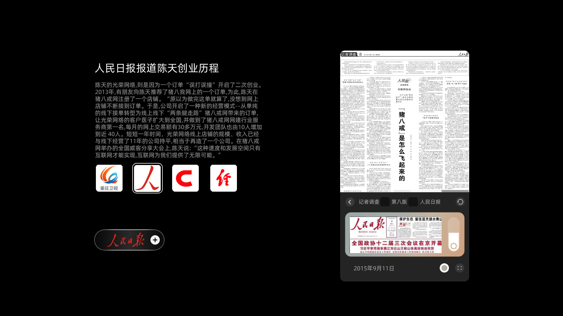 14年前,陈天只身一人来到重庆,创办了一家名叫“光荣网络”的公司,提供网站建设等服务。